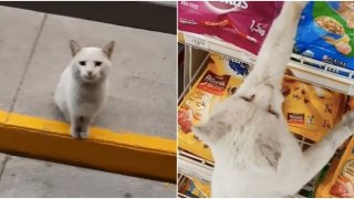 สาวเม็กซิโกเจอแมวจรจัดเดินพาเข้าร้านขายอาหารสัตว์เลี้ยง สุดท้ายตกหลุมพรางจนต้องรับเลี้ยงดู