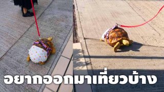 เผยภาพสุดน่ารัก สาวพาน้องเต่ามาเดินเล่นเปิดหูเปิดตา ข้างนอก