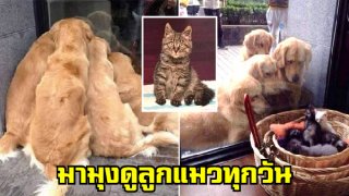 เจ้าของพาโกลเด้นทั้ง 4 ออกมาเดินเล่น และพวกน้องชอบมาดูมิ้วน้อยในห้องกระจกทุกวัน