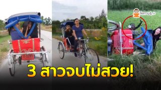 3 สาวขึ้นรถสามล้อถีบ ป้ายแดง โบกไม้โบกมือให้กล้องเก๋ๆ ก่อนเจอจุดจบสุดฮา