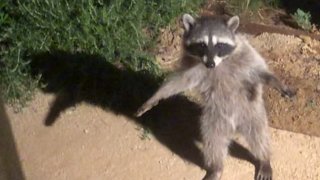 ช่วงเวลาสุดเฮฮา ขณะแร็กคูนสะดุ้งตกใจจนยืนนิ่งเหมือนมนุษย์ หลังถูกจับได้ว่าแอบย่องเข้าสวนหลังบ้าน(มีคลิป)