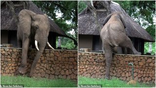 ช่วงเวลาสุดขำขัน เมื่อช้างพยายามปีนกำแพงสูง 5 ฟุตเพื่อขโมยมะม่วงกิน (มีคลิป)