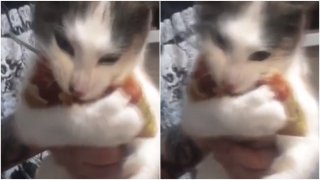 แมวน้อยจอมหวง! ไม่ว่าจะเกิดอะไรขึ้นมันจะไม่ยอมแบ่งพิซซ่าชิ้นนี้กับใครหน้าไหนก็ตาม (มีคลิป)