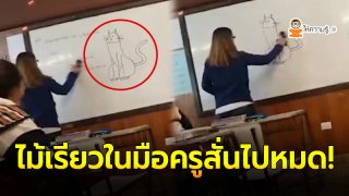อาจารย์สาวหน้าถอดสี ลูกศิษย์ตัวแสบวาดรูปแมวบนกระดาน ก่อนนำแปลงมาลบออกได้แค่บางส่วน