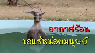 หญิงสาวแบ่งปันคลิปจิงโจ้ที่เหนื่อยล้าพบสระว่ายน้ำในสวนหลังบ้านของเธอ ก่อนลงไปนอนแช่เพื่อคลายร้อน