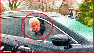 แค่พายุฤดูหนาวถล่มจะเครียดไปทำไม! คุณพ่อโชว์มุกฮาๆท้าลมหนาว หลังรถยนต์ถูกแช่แข็งในชั่วข้ามคืน (มีคลิป)