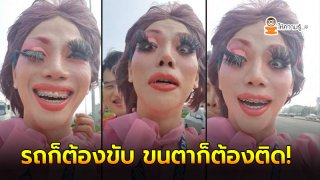 สาวสองติดขนตาแล้วขับรถ ทำคนมองทั้งถนน