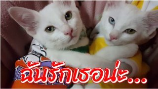 หนูชื่อ สโนว์ กับ นมสด เราเป็นพี่น้องกันค่ะ (แมวไทย ขาวมณี)