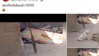 เจ้าตูบน้อย ได้ยินเสียงไก่ขัน พยามส่งเสียงขันตามไก่ เสียงเหมือนมาก