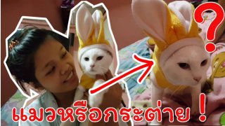 "แปลงร่างเป็นกระต่ายน้อย" แมวพันธุ์ไทย ขาวมณี ตาสองสี ตาดำใหญ่ น่ารักที่สุด