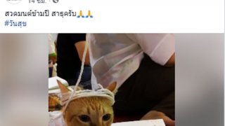 สาธุจ้า!! เจ้าของใจบุญพา "น้องเหมียว" นุ่งขาวห่มขาวสวดมนต์ข้ามปี น่ารักสุดๆ