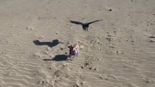 ความซวยของน้องหมาชิวาวา หลังโดนอีกาตัวยักษ์วิ่งโฉบริมชายหาด (มีคลิป)