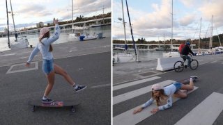 สาวรัสเซียสุดซวย! โชว์เต้นบน long board สุดท้ายเป็นแบบนี้ (มีคลิป)