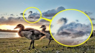 ช่างภาพสาวถ่ายภาพเป็ดริมทะเลสาบ ขณะที่เมฆในพื้นหลังมีลักษณะเหมือนเป็ด...บังเอิญไปไหม?