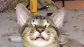 น่ารักมาก น้องแมว เวลาจะกินยา ชอบแกล้งหลับ (ชมคลิป)