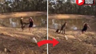 คลิปชายหนุ่มถูกจิงโจ้โจมตี แต่ชาวเน็ตกลับโฟกัสสิ่งที่เขาถือในมือ หลายคนถึงกับยอมใจเขาเลยจริงๆ