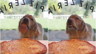 มนุษย์ส่ง"พิซซ่า"มาให้กินซะดีๆ!!คลิปสุนัขหิวจัดพยายามเลียกินพิซซ่าผ่านหน้าต่างกระจกของร้าน
