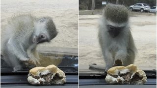 จะขำหรือสงสารดี? ลิงน้อยพยายามคว้าเบอร์เกอร์แสนอร่อยผ่านกระจกรถ สุดท้ายเสียเวลาเปล่า (คลิป) !!