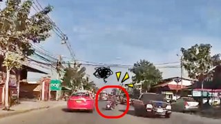 มอไซด์เดือด!ไล่ตามถีบรถแทกซี่ แต่โดนเกราะสะท้อนเข้าไป เกือบโดนเหยียบหัวแล้ว