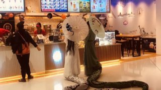 พบ ‘นางพญางูขาว-งูเขียว’ ต่อคิวซื้อไอศกรีมกลางกรุงปักกิ่ง