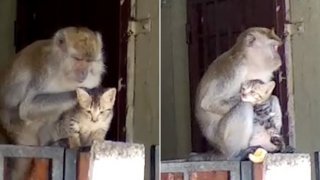 น่ารักมากกก...ลิงป่าลักพาตัวลูกแมวสุดน่ารักไปเลี้ยง (มีคลิป)
