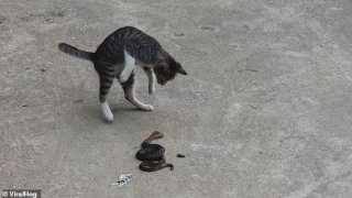 นาทีระทึก! แมวน้อยใจกล้าบุกตบงูมีพิษ ที่แอบเลื้อยเข้าบ้านแบบไม่กลัวตาย (มีคลิป)