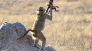 ความบังเอิญที่น่ามหัศจรรย์!! ช่างภาพชาวอิสราเอล โชว์ภาพถ่ายลิงบาบูนตัวผู้กำลังชูลูกลิง คล้ายกับกับฉาก "ซิมบ้า" ในเดอะไลอ้อนคิง