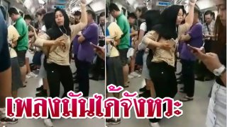 สาวใส่หูฟัง “เต้นไม่สนใจใคร” บนรถไฟฟ้า