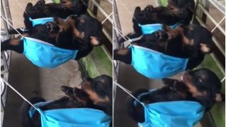 เกิดเป็นลูกหมามันก็จะสบายแบบนี้แหล่ะ!! ไกวเข้าไปเจ้ามนุษย์555++ (มีคลิป)