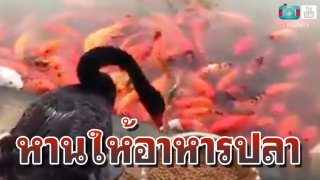 คลิปสุดซึ้ง ห่านให้อาหารปลา