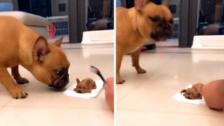 มนุษย์ใจร้าย!! เฟรนช์ บูลด็อกถึงกับช็อก หลังเจ้าแกล้งกินเค้กรูปหมาให้ดู (คลิป)