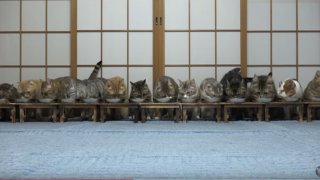น่ารักมาก แมวในญี่ปุ่นนั่งกินอาหารได้อย่างเป็นระเบียบเรียบร้อย น่าเลี้ยงจริงๆ