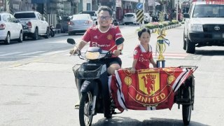 ไวรัลสุดน่าเอ็นดู พ่อลูกขี่รถซาเล้งอวดถ้วยหลัง แมนยูคว้าแชมป์เอฟเอคัพสมัยที่13