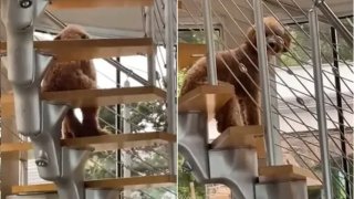 นึกว่าใครนั่งอยู่ที่บันได..กลับกลายเป็นเจ้าหมา ฮาเลยทีนี้!