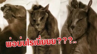 พ่อบ่นไรเนี่ย!! เหมียวรำคาญพ่อบ่น ถึงกับรีบเอามืออุดหู..