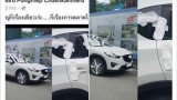เกิดอะไรขึ้น !! กับรถคันนี้ แปะผ้าอนามัยรอบคันรถ