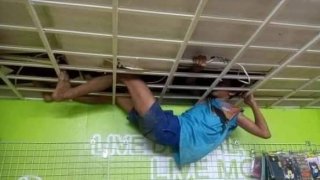 ขโมยมือใหม่พลาดหัวติดเพดาน!!เดือดร้อนเจ้าของร้านช่วย