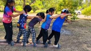 "สกีบก" ของเล่นเด็กในฐาน สามัคคีคือพลังเก้าเท้าพร้อมกันสร้างความผูกพันที่มีความแข็งแกร่งขอวนักวางแผน