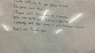 เมื่อครูจับได้ว่านักเรียนชอบเล่นเกมในเวลาเรียน เลยทิ้งข้อความนี้ไว้บนกระดาน