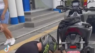 โนสนโนเเคร์!! เมื่อหนุ่มฝรั่งถูกล็อกล้อรถมอเตอร์ไซค์ หินก้อนเดียวทุบโซ่ขาด ไม่จ่ายมีไรเเมะ!! 😁