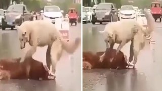 สุดเศร้า!! หมาร้องไห้หนัก เพื่อนรักโดนรถชนตายกลางถนน พยายามเรียกเพื่อนให้ตื่น แต่เพื่อนก็ไม่กลับมา