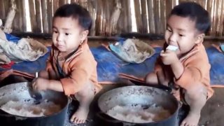 เด็กน้อยชาวกัมพูชา กินข้าวเปล่าอย่างเอร็ดอร่อย