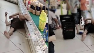 สบายจัด!! หนุ่มจีนนอนชิวในห้าง แถมเอาเท้าพาดบนชั้นวางเครื่องดื่มอีก ชาวเน็ตตำหนิไร้มารยาท 😒