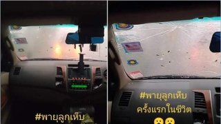 พายุลูกเห็บถล่มใส่รถ..ทำได้แค่นั่งดูกระจกค่อยๆ แตก