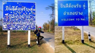 เทรนด์อะไรเนี่ย! นักท่องเที่ยวแวะเซลฟี่ และแห่ติดสติกเกอร์ป้าย อ.ปาย