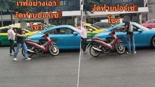 งานเข้า! เพราะ "เวฟ" มันแรง แซงไม่พ้น..เสยรถ "ปอร์เช่" เข้าไปเต็มๆ