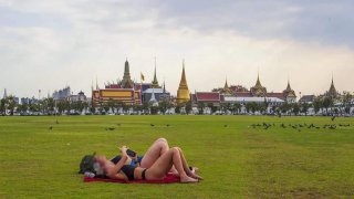 นทท.สาวต่างชาติ นุ่งบิกินี่อาบแดดให้โลกจำ..เลยทำกลางสนามหลวงนี่แหล่ะ ดังทันที!!