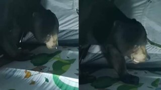 สุดระทึก! หญิงสาวแทบช็อค..เห็นหมีกลางดึก มุดเต็นท์มาขโมยอาหาร