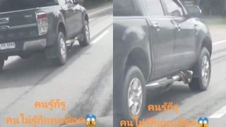 แทบช็อก!! ขับรถอยู่ดีๆ..มีงูใหญ่เลื้อยริมรถไม่รู้ตัว
