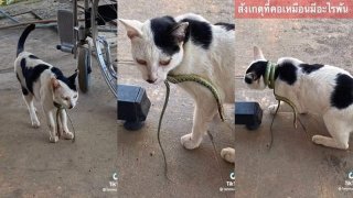 วงแตกทั้งโรงพยาบาล..แมวโดนงูรัดคอ เดินวนขอความช่วยเหลือ